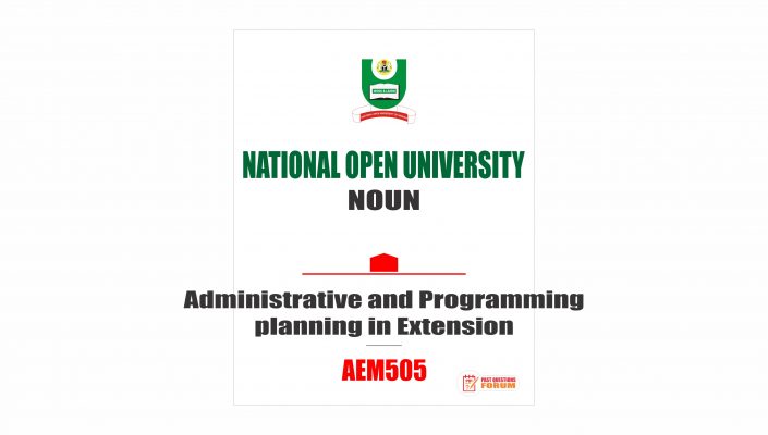 Noun Past Questions For AEM505 – Administrative and Programming planning in Extension. Locate the download button below to download the Noun Past Questions for AEM505 – Administrative and Programming planning in Extension.