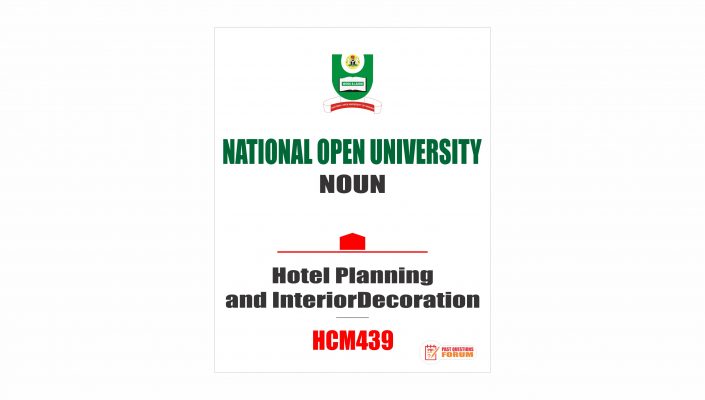 Noun Past Questions For HCM439 – Hotel Planning and Interior Decoration. Locate the download button below to download the Noun Past Questions for HCM439 – Hotel Planning and Interior Decoration